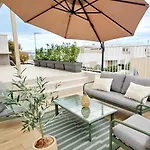 The accommodation offers an adjoining terrace, a balcony, and a dressing room, as well as comforts like air conditioning. The apartment features a bathroom with hair dryers and bath sheets. Furthermore, a walk-in shower and a separate toilet is available.